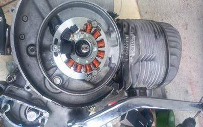 Das mit Abstand spannendste Projekt dieses Jahres war die Modifikation eines Motors für eine APE 50. Dieser wurde auf 133 Kubik aufgemacht mit allem Schnickschnack was ich da sonst auch hinein baue. Also großer Zylinder mit Angleichen der Überströme andere Kurbelwelle andere Steuerzeit anderer Auspuff andere Zündung andere Kupplung anderer Vergaser anderer Ansaugstutzen und natürlich eine andere Primär. Die Übersetzung wurde etwas kürzer weil die APE ja doch etwas schwerer ist. Mit der Kühlerhaube muss man etwas erfinden oder ansonsten einen Schwungrad von einer elektrisch gestarteten Elestart PK. Aber dann geht es auch. :-))